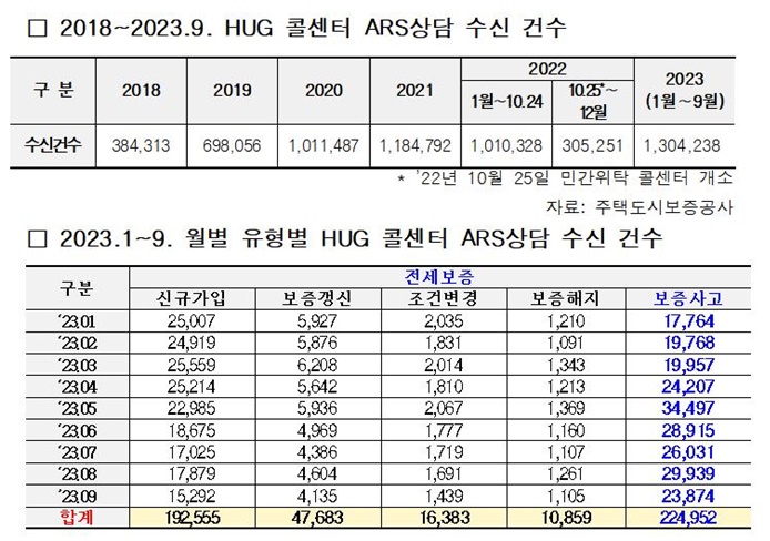 ±¹È¸ ±¹Åä±³ÅëÀ§¿øÈ¸ ¼Ò¼Ó ¹Îȫö ÀÇ¿ø(´õºÒ¾î¹ÎÁÖ´ç, °æ³²±èÇØ°©)ÀÌ ÁÖÅõµ½Ãº¸Áõ°ø»ç(ÀÌÇÏ HUG)·ÎºÎÅÍ Á¦Ãâ¹ÞÀº ÀÚ·á¿¡ µû¸£¸é, Áö³ÇØ HUG Äݼ¾ÅÍ »ó´ã ¼ö½Å°Ç¼ö°¡ 131¸¸ 5,579°Ç¿¡ ´ÞÇÑ °ÍÀ¸·Î Áý°èµÆ´Ù.