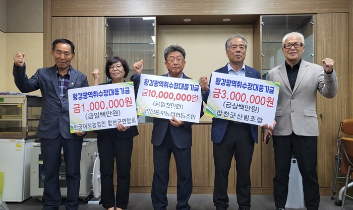 À̳¯ ÇÕõµ¿ºÎ³ó¾÷Çùµ¿Á¶ÇÕ(Á¶ÇÕÀå ³ëÅÂÀ±)¿¡¼ 1000¸¸¿ø, ÇÕõ±º»ê¸²Á¶ÇÕ(Á¶ÇÕÀå ±èżö)¿¡¼ 300¸¸¿ø, Çѱ¹¿©¼º³ó¾÷ÀÎ ÇÕõ±º¿¬ÇÕȸ(ȸÀå ±èÃáÀÚ)¿¡¼ 100¸¸¿øÀ» ±âŹÇß´Ù.
