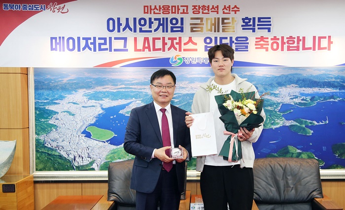 À̹ø ȯ´ã¿¡¼ È«³²Ç¥ ½ÃÀåÀº ÃÖ±ÙÀÇ ÀåÇö¼® ¼±¼ö ¼ºÀûÀ» °Ý·ÁÇϰí, “â¿ø½ÃÀÇ ÀÚ¶û½º·¯¿î ½Ã¹ÎÀÓÀ» Ç×»ó °¡½¿¿¡ »õ°Ü ¹Ì±¹ ¸ÞÀÌÀú¸®±×¿¡¼µµ ¸ÚÁø Ȱ¾àÀ» ÆîÃÄÁֱ⸦ ¹Ù¶õ´Ù”°í ´çºÎÇß´Ù.