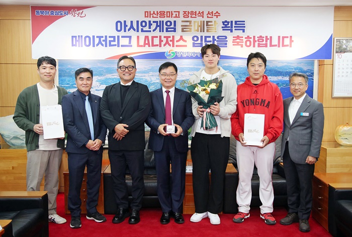 [½Ã»çÄÚ¸®¾ÆÀú³Î=Á¤Á¾¹Î ¼±ÀÓ±âÀÚ] È«³²Ç¥ â¿øÆ¯·Ê½ÃÀåÀº 20ÀÏ ½Ãû Á¢°ß½Ç¿¡¼ ¹Ì ÇÁ·Î¾ß±¸ LA´ÙÀú½º¿¡ ÁøÃâÇÏ´Â ¸¶»ê¿ë¸¶°í ¾ß±¸ºÎ ÀåÇö¼® Åõ¼ö¿Í °¨µ¶, °ü°èÀÚ µîÀ» °Ý·ÁÇÏ´Â ÀÚ¸®¸¦ ¸¶·ÃÇß´Ù.