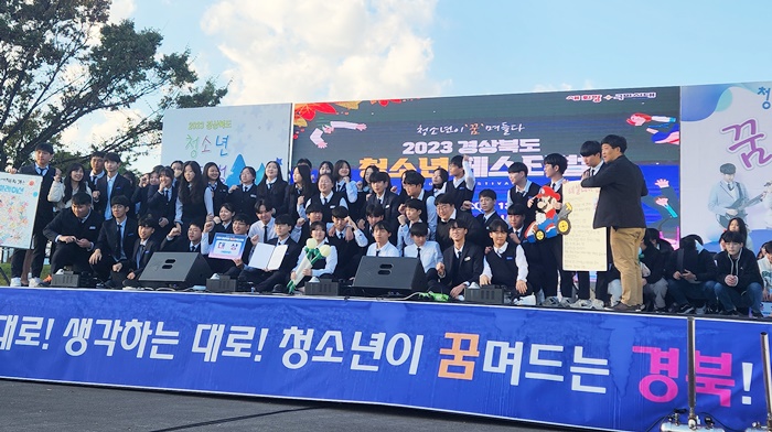 [½Ã»çÄÚ¸®¾ÆÀú³Î=±è¿¬ÇÐ ±âÀÚ] °æºÏµµ´Â 21ÀÏ ±¸¹Ì½Ã µ¿¶ô°ø¿ø¿¡¼ µµ³» °¢ ½Ã±º û¼Ò³â, µ¿¾Æ¸®µéÀÌ Âü¿©ÇÑ °¡¿îµ¥ '2023 °æ»óºÏµµ û¼Ò³â Æä½ºÆ¼¹ú'À» °³ÃÖÇß´Ù.
