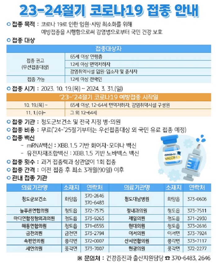 [½Ã»çÄÚ¸®¾ÆÀú³Î=°æºÏÃëÀ纻ºÎ] ûµµ±º(±º¼ö ±èÇϼö)Àº 10¿ù 19ÀϺÎÅÍ ³»³â 3¿ù 31ÀϱîÁö ‘23-’24Àý±â Äڷγª19 ¿¹¹æÁ¢Á¾’À» ¹«·á·Î ½Ç½ÃÇÑ´Ù°í ÀüÇß´Ù.