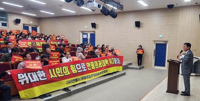¾ÆÆÄÆ® ÀÔÁÖÀÚ´ëǥȸÀÇ ±¸¼º¿ø(ÀÓ¿ø, µ¿º° ´ëÇ¥ÀÚ µî) 150¿© ¸íÀÌ ¾Èµ¿½Ã °øµ¿ÁÖÅà ¿î¿µ ±³À°À» À§ÇØ ¸ðÀÎ °¡¿îµ¥ ÇÚµå¹è³Ê¸¦ µé°í ÀÇ´ë À¯Ä¡¸¦ ¿°¿øÇÏ´Â ±¸È£¸¦ ¿ÜÄ¡¸ç °£ÀýÇÔÀ» È£¼ÒÇß´Ù.
