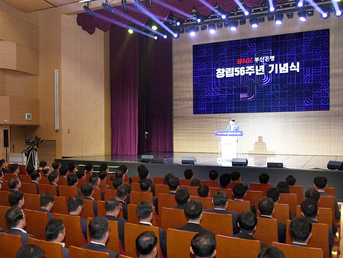 [½Ã»çÄÚ¸®¾ÆÀú³Î=±èÈñ¿µ ±âÀÚ] BNKºÎ»êÀºÇàÀº 25ÀÏ ¿ÀÀü, º»Á¡ ´ë°´ç¿¡¼ ºÎ»êÀºÇà ÀÓÁ÷¿ø 300¿©¸íÀÌ Âü¼®ÇÑ °¡¿îµ¥ ⸳ 56Áֳ⠱â³ä½ÄÀ» °³ÃÖÇß´Ù.