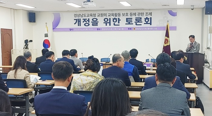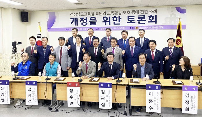 ±³À°À§¿øÈ¸ ¹Úº´¿µ(±èÇØ5,±¹¹ÎÀÇÈû)À§¿øÀåÀÇ Ãà»ç·Î ½ÃÀÛµÈ Åä·Ðȸ´Â Á¤¼ö¸¸ ÀÇ¿ø(°ÅÁ¦1‧±¹¹ÎÀÇÈû)ÀÇ '±³±Ç ȸº¹ ¹× º¸È£¸¦ À§ÇÑ Á¶·Ê °³Á¤ ¹æ¾È'À̶ó´Â ÁÖÁ¦·Î ¡¸°æ»ó³²µµ±³À°Ã» ±³¿øÀÇ ±³À°È°µ¿ º¸È£ µî¿¡ °üÇÑ Á¶·Ê¡¹ ÀüºÎ °³Á¤¾ÈÀÇ ÃʾÈÀÌ Á¦½ÃµÆ´Ù.