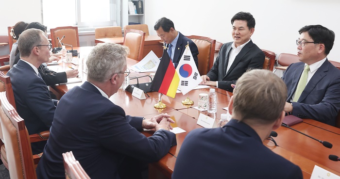 [½Ã»çÄÚ¸®¾ÆÀú³Î=Á¤Á¾¹Î ¼±ÀÓ±âÀÚ] ±¹È¸ ¿Ü±³ÅëÀÏÀ§¿øÈ¸ ±èÅÂÈ£ À§¿øÀåÀº 26ÀÏ ±¹È¸¿¡¼ µ¶ÀÏ ¿¬¹æÇÏ¿ø ´ëÇ¥´Ü(´ÜÀå ¹ÌÇÏ¿¤ ¹Á·¯ ÀÇ¿ø)À» ¸¸³ª Çѱ¹°ú µ¶ÀÏÀÇ ±³·ù Çù·Â È®´ë ¹× ±¹Á¦°øÁ¶ °È µî¿¡ ´ëÇÑ ÀǰßÀ» ±³È¯Çß´Ù.