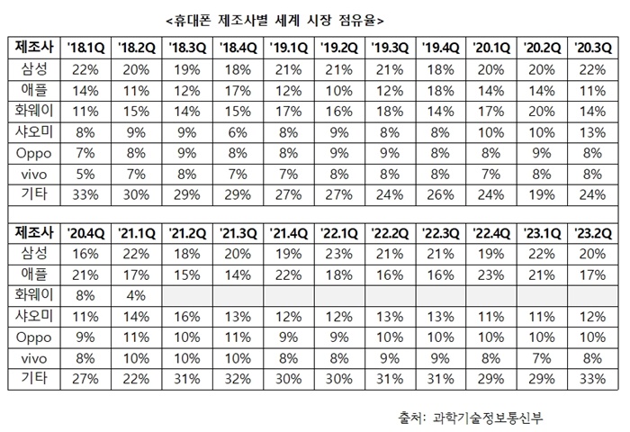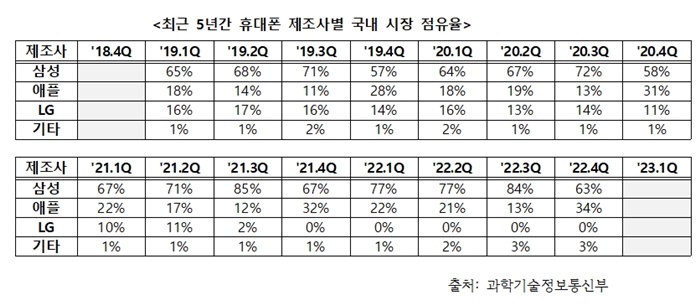°ú±âÁ¤ÅëºÎ°¡ Á¦ÃâÇÑ ÀÚ·á¿¡ µû¸£¸é, »ï¼ºÀüÀÚÀÇ ±¹³» ½º¸¶Æ®Æù ½ÃÀå Á¡À¯À²Àº ºÐ±âº°·Î ÃÖ¼Ò 50% ÀÌ»óÀ¸·Î »ç½Ç»ó ±¹³» ½ÃÀåÀ» µ¶Á¡Çϰí ÀÖ´Ù.