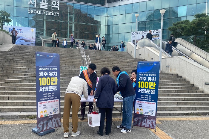 [½Ã»çÄÚ¸®¾ÆÀú³Î=°æºÏÃëÀ纻ºÎ] °æÁֽà ȫº¸ÀÚ¹®À§¿øÈ¸°¡ Áö³ 27ÀÏ ¼¿ï¿ª¿¡¼ ‘2025 APEC Á¤»óȸÀÇ’ °æÁÖÀ¯Ä¡¸¦ À§ÇÑ 100¸¸ÀÎ ¼¸í ¿îµ¿À» ÆîÃÆ´Ù.