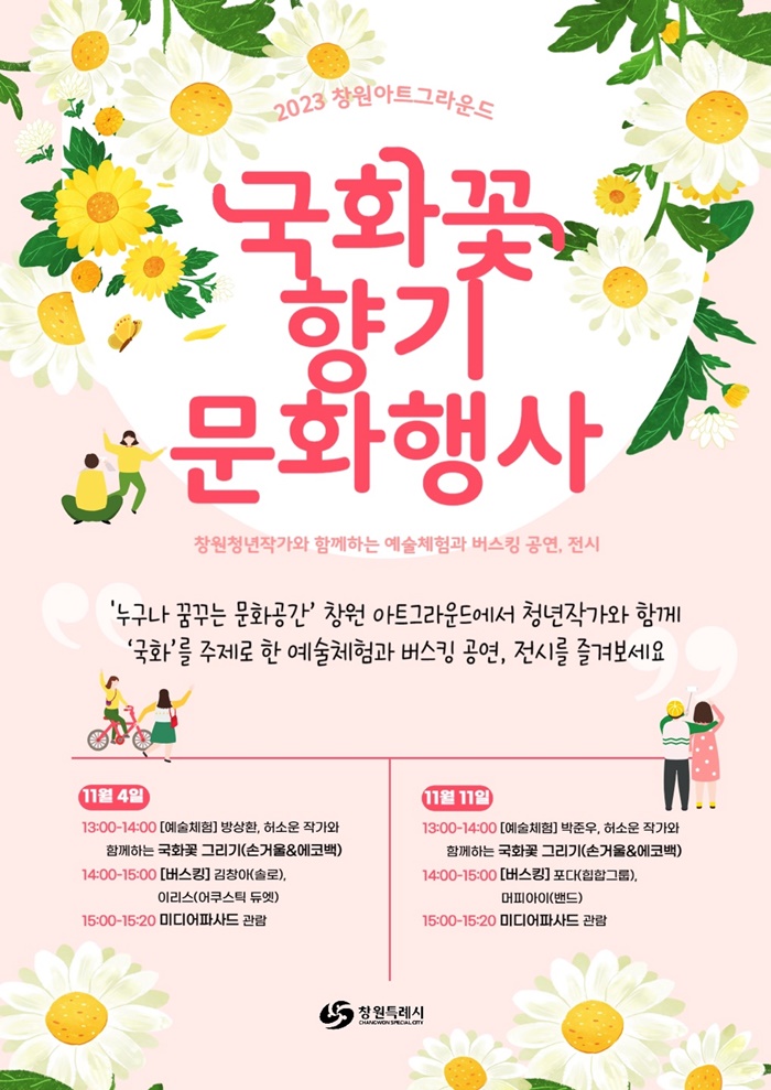 [½Ã»çÄÚ¸®¾ÆÀú³Î=Á¤Á¾¹Î ¼±ÀÓ±âÀÚ] â¿øÆ¯·Ê½Ã(½ÃÀå È«³²Ç¥)´Â 11¿ù 4ÀϺÎÅÍ Ã¢¿ø¾ÆÆ®±×¶ó¿îµå¿¡¼ '±¹È²É Çâ±â'¸¦ ÁÖÁ¦·Î Áö¿ª û³â ¿¹¼úÀΰú ÇÔ²²ÇÏ´Â ¹®ÈüÇèÇà»ç, ¹ö½ºÅ· °ø¿¬, »çÁø ÀÛǰ Àü½Ã¸¦ ÁøÇàÇÑ´Ù°í ¹àÇû´Ù.