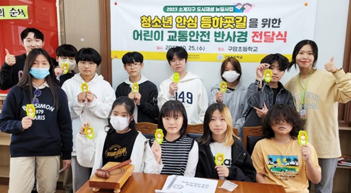 | â¿ø½Ã ÀÇⱸ ¼Ò°èÁö±¸ µµ½ÃÀç»ý ÇöÀåÁö¿ø¼¾ÅÍ ¼Ò°èÁö±¸ ¾È½É¼Ò°è·Î ÇÁ·Î±×·¥ÀÇ ÀÏȯÀ¸·Î ¾î¸°ÀÌ µîÇϱ³ ¾ÈÀüÀ» À§ÇÑ ¾ß°£¹Ý»ç°æ(¿»·ÎÄ«µå) 460°³¸¦ ±¸¾ÏÃʵîÇб³¿¡ Àü´ÞÇß´Ù. |