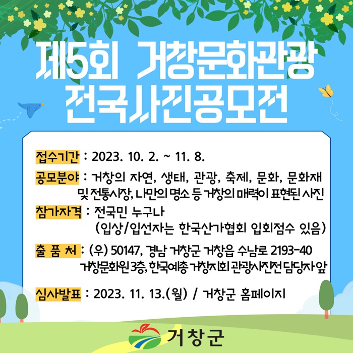 À̹ø °ø¸ðÀüÀº °ÅâÀÇ ÀÚ¿¬, »ýÅÂ, °ü±¤, ÃàÁ¦, ¹®È, ¹®ÈÀç ¹× ÀüÅë½ÃÀå, ¸Ô°Å¸®, ³ª¸¸ÀÇ ¸í¼Ò µî °ÅâÀÇ ¸Å·ÂÀÌ Ç¥ÇöµÈ »çÁøÀ̸é Àü ±¹¹Î ´©±¸³ª Âü¿©ÇÒ ¼ö ÀÖ´Ù.