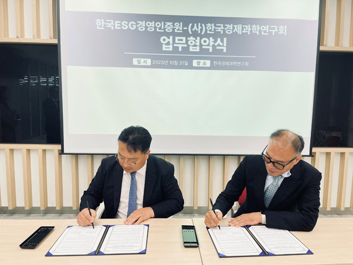 [½Ã»çÄÚ¸®¾ÆÀú³Î=À̼±¿ì±âÀÚ] (»ç)Çѱ¹°æÁ¦°úÇבּ¸È¸(ȸÀå ¹é¿øÃ¶)´Â °ø°ø±â°ü ¹× Áß¼Ò±â¾÷ÀÇ ESG°æ¿µ Àúº¯È®´ë¸¦ À§ÇØ Çѱ¹ESG°æ¿µÀÎÁõ¿ø(ÀÌ»çÀå À̼±¿ì)°ú °øµ¿ ¿¬±¸Âü¿©, Á¤º¸ÀÚ·á °øÀ¯, ÇØ¿Ü ÁøÃâ ¸ð»ö µî »óÈ£ °øÀ¯¸¦ À§ÇÑ ¾÷¹«Çù¾à(MOU)'À» Áö³´Þ 31ÀÏ Ã¼°áÇß´Ù°í ¹àÇû´Ù.