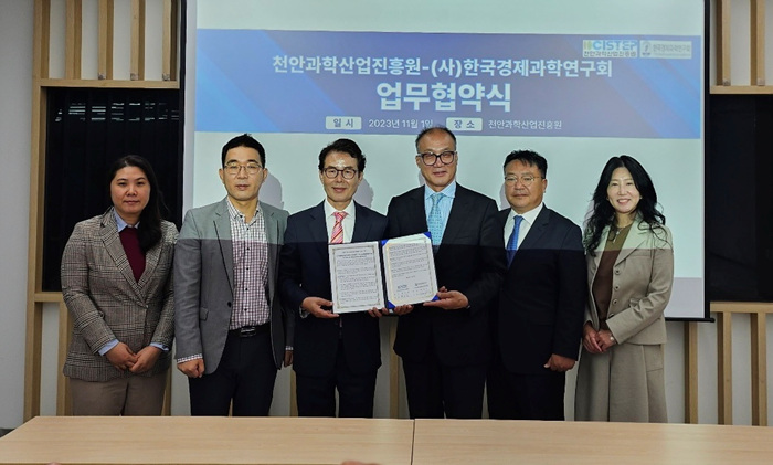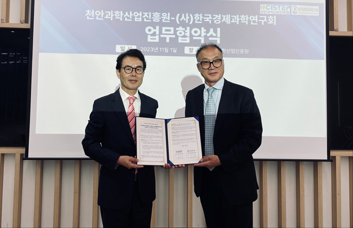 [½Ã»çÄÚ¸®¾ÆÀú³Î=À̼±¿ì±âÀÚ] õ¾È°úÇлê¾÷ÁøÈï¿ø(¿øÀå Ȳ±ÔÀÏ)Àº »ç´Ü¹ýÀÎ Çѱ¹°æÁ¦°úÇבּ¸È¸(ȸÀå ¹é¿øÃ¶)¿Í ¿ì¼öÇÑ ±³À° ½Ã¼³°ú ¿¬±¸ ÀηÂÀ» ¹ÙÅÁÀ¸·Î °øµ¿ ¹ßÀüÀ» ÃßÁøÇÔ°ú µ¿½Ã¿¡ ¿¬±¸ ¿ª·® °È ¹× °æÀï·Â Á¦°í¸¦ À§ÇØ °øµ¿Çмú¿¬±¸, ÀÎÀû ±³·ù, Á¤º¸ÀÚ·á »óÈ£ °øÀ¯¸¦ À§ÇÑ ¾÷¹«Çù¾à(MOU)À» 1ÀÏ ÁøÈï¿ø ´ëȸÀǽǿ¡¼ ü°áÇß´Ù°í ¹àÇû´Ù.