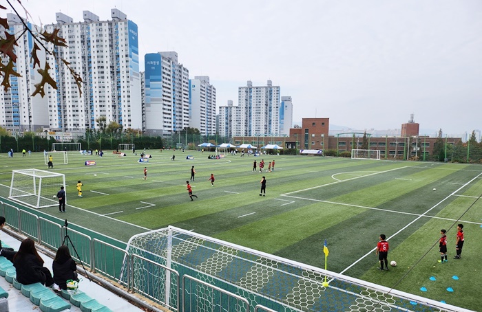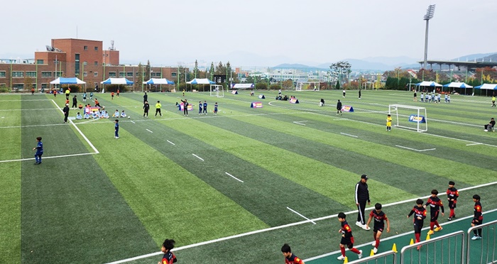 U-8, U-10, U-12 À¯¼Ò³â Ã౸¼±¼öµéÀº ÀÏ¿äÀÏ ¾ÆÄ§ ÀÏÂïºÎÅÍ ±×µ¿¾È °¥°í ´ÛÀº ½Ç·ÂÀ» »Ë³»¸ç ¿½ÉÈ÷ ±×¶ó¿îµå¸¦ ´©º³°í, ÇÔ²² °æ±âÀå¿¡ ³ª¿Â ºÎ¸ðµéÀº °Ç°ÇÏ°í ¾¿¾¿ÇÏ°Ô ¶Ù´Â ¾ÆÀ̵éÀ» º¸°í ¹Ú¼ö¿Í ÀÀ¿øÀ» º¸³Â´Ù.