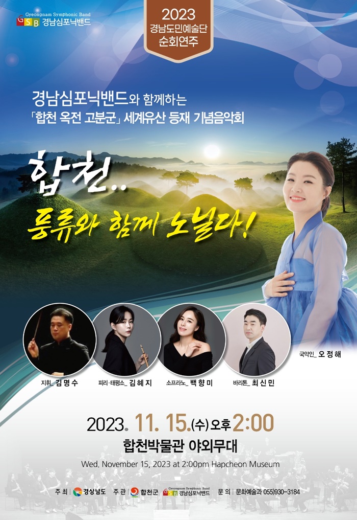 Áö¿ª °£ÀÇ ÈÇÕ°ú Áö¿ª¹Î°úÀÇ ±³·ù¸¦ ³ÐÈ÷°íÀÚ ÇÏ´Â °æ³²½ÉÆ÷´Ð¹êµå´Â Á¦45Â÷ ¼¼°èÀ¯»êÀ§¿øÈ¸¿¡¼ ÇÕõ ¿ÁÀü°íºÐ±ºÀÌ ¼¼°èÀ¯»ê µîÀç°¡ ÃÖÁ¾ È®Á¤¿¡ µû¶ó ¿ì¼öÇÑ ¿ª»ç¿Í ¼¼°èÀ¯»êÀû °¡Ä¡¸¦ Àû±ØÀûÀ¸·Î È«º¸Çϱâ À§ÇÏ¿© ÁغñÇÑ À½¾Çȸ·Î °æ»ó³²µµ 2023°æ³²µµ¹Î¿¹¼ú´Ü ¼øÈ¸°ø¿¬»ç¾÷ÀÇ ÀÏȯÀ¸·Î °æ»ó³²µµ°¡ ÁÖÃÖÇϰí ÇÕõ±º, °æ³²½ÉÆ÷´Ð¹êµå°¡ ÁÖ°üÇÏ´Â °ø¿¬ÀÌ´Ù.