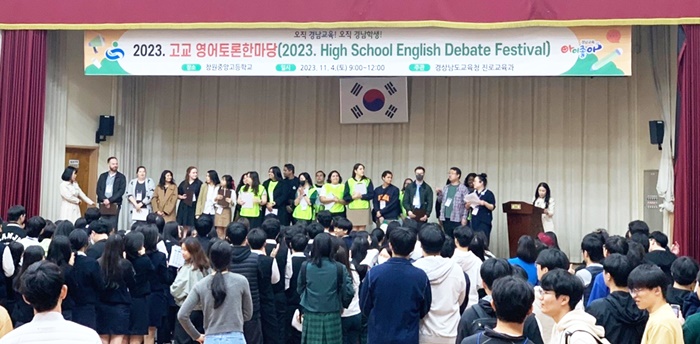 [½Ã»çÄÚ¸®¾ÆÀú³Î=Á¤Á¾¹Î ¼±ÀÓ±âÀÚ] °æ³²µµ±³À°Ã»(±³À°°¨ ¹ÚÁ¾ÈÆ)Àº 4ÀÏ 15°³ Çб³ Çлý 176¸í°ú ¿ø¾î¹Î ¿µ¾î º¸Á¶±³»ç, Çù·Â±³»ç 35¸íÀÌ Âü¿©ÇÏ´Â 2023³â °í±³ ¿µ¾î Åä·Ð ÇѸ¶´ç Çà»ç¸¦ â¿øÁß¾Ó°íµîÇб³¿¡¼ ¿¾ú´Ù.