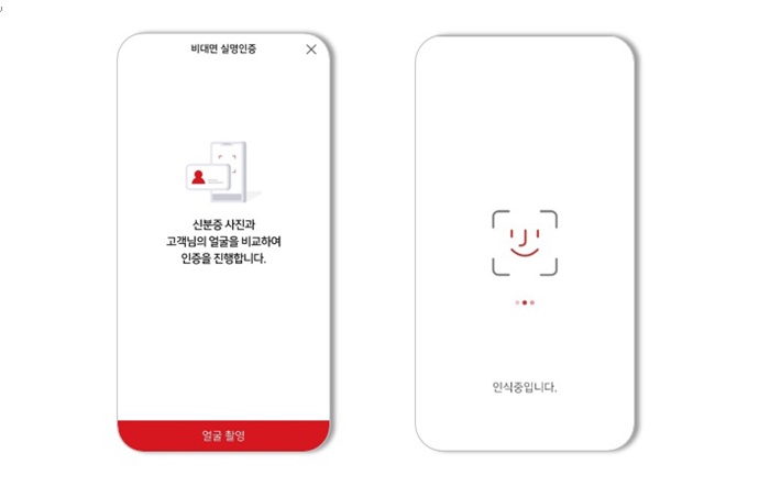 ½ÅºÐÁõ ¾È¸éÀÎ½Ä ½Ã½ºÅÛÀº ½º¸¶Æ®ÆùÀ¸·Î ºñ´ë¸é °Å·¡¸¦ ÁøÇàÇϰí ÀÖ´Â °í°´ÀÇ ¾ó±¼ ÃÔ¿µ »çÁø°ú ½ÅºÐÁõ »çÁøÀ» ºñ±³ÇØ º»ÀÎ È®ÀÎÀ» ÇÏ´Â ¹æ½ÄÀÌ´Ù.