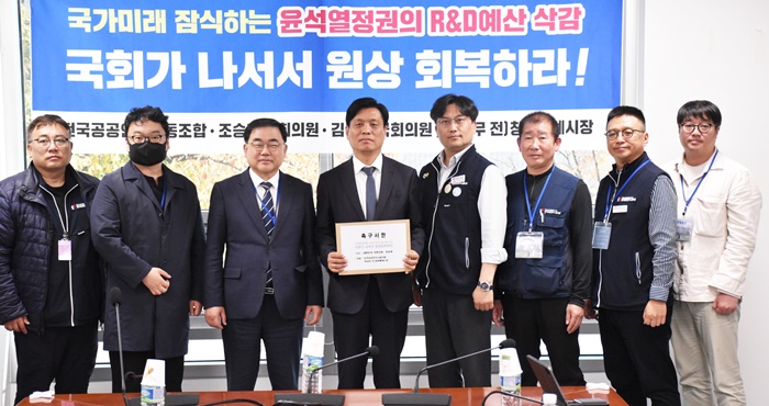 ÀÌ ÀÚ¸®¿¡¼ Çã Àü ½ÃÀå°ú Àü±¹°ø°ø°ø³ëÁ¶´Â Á¤ºÎÀÇ R&D ¿¹»ê »è°¨Àº ±¹°¡ÀÇ ¹Ì·¡¸¦ Àá½ÄÇÏ´Â ÇàÀ§¶ó°í ºñÆÇÇÏ¸ç ±¹È¸°¡ ³ª¼¼ ¿ø»óȸº¹À» Ã˱¸ÇÏ´Â ¼ÇÑÀ» Àü´ÞÇß´Ù.