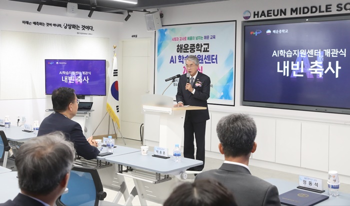 | â¿ø½Ã ¸¶»êÇÕÆ÷±¸¿¡ ÀÖ´Â ÇØ¿îÁßÇб³°¡ 8ÀÏ ‘ÀΰøÁö´É(AI)ÇнÀÁö¿ø¼¾ÅÍ’¸¦ °³°üÇß´Ù. »çÁøÀº ¹ÚÁ¾ÈÆ °æ³²±³À°°¨ÀÌ Ãà»ç¸¦ Çϰí ÀÖ´Ù. |