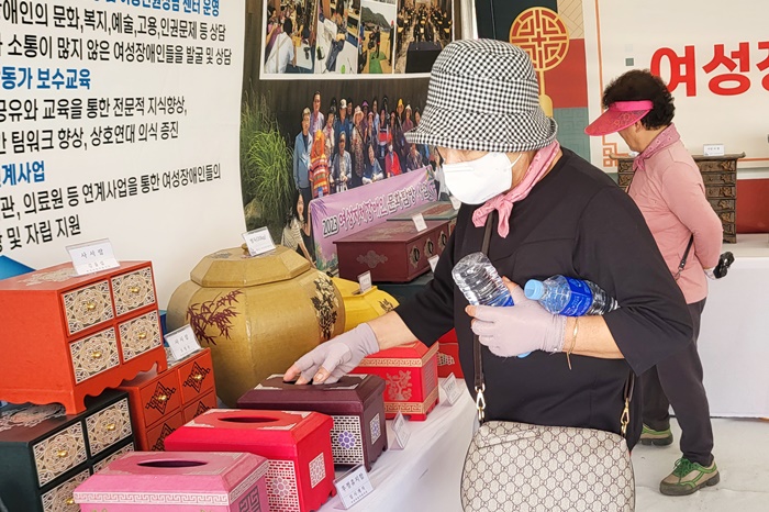 û¼Û»ç°úÃàÁ¦±â°£(11¿ù 1ÀÏ~ 5ÀÏ) µ¿¾È ÃàÁ¦Àå¿¡¼ ¿©¼ºÀå¾ÖÀεéÀÌ ¸¸µç °ø¿¹ÀÛǰÀÌ Àü½ÃµÅ °ü¶÷°´µéÀÇ ´«±æÀ» ²ø¾ú´Ù.