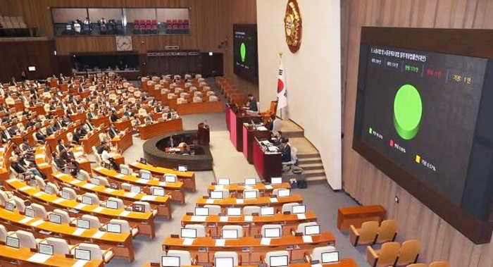 | ³ë¶õºÀÅõ¹ý(³ëµ¿Á¶ÇÕ¹ý ¹× ³ëµ¿°ü°èÁ¶Á¤¹ý 2·3Á¶ °³Á¤¾È)ÀÌ 9ÀÏ ±¹È¸ º»È¸ÀÇ¿¡¼ ±¹¹ÎÀÇÈû ÀÇ¿øµéÀÌ ÅðÀåÇÑ °¡¿îµ¥, Àç¼® 174¸í Áß Âù¼º 173¸í, ±â±Ç 1¸íÀ¸·Î Åë°úµÇ°í ÀÖ´Ù. |