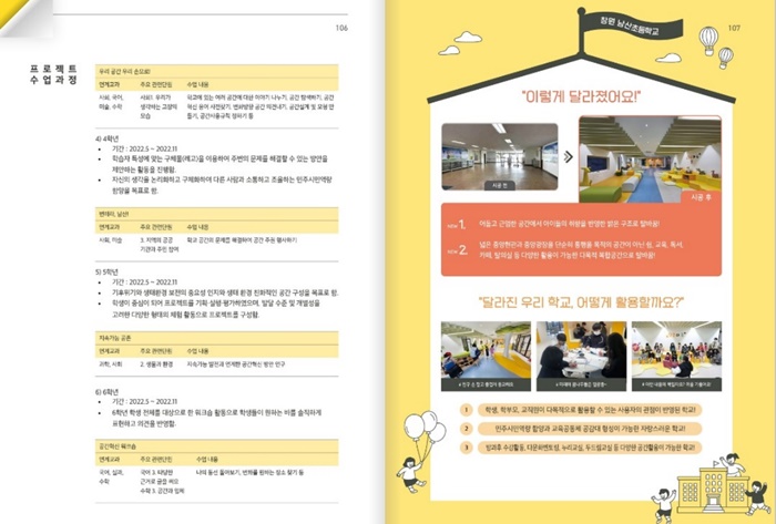 ÀüÀÚÃ¥Àº Áö³ÇØ ¿µ¿ª´ÜÀ§ °ø°£Çõ½Å »ç¾÷À¸·Î Á¶¼ºµÈ 35°³ Çб³(À¯Ä¡¿ø 1°³, ÃʵîÇб³ 23°³, ÁßÇб³ 9°³, °íµîÇб³ 2°³)¸¦ ´ã¾Ò´Ù. ƯÈ÷ »ç¿ëÀÚ Âü¿© ¼³°è °úÁ¤À» ±³À°°úÁ¤°ú ¿¬°èÇÑ »ç·Ê¸¦ ¼Ò°³ÇÏ°í ±× °úÁ¤À» »ó¼¼ÇÏ°Ô ±â·ÏÇß´Ù. Âü°¡ÀÚ´Â ¹ÎÁÖÁÖÀǸ¦ °æÇè, ½ÇõÇÏ¿´À¸¸ç Âü¿©¿Í ¹è·Á, Çù·ÂÀ» ¹è¿ü´Ù.