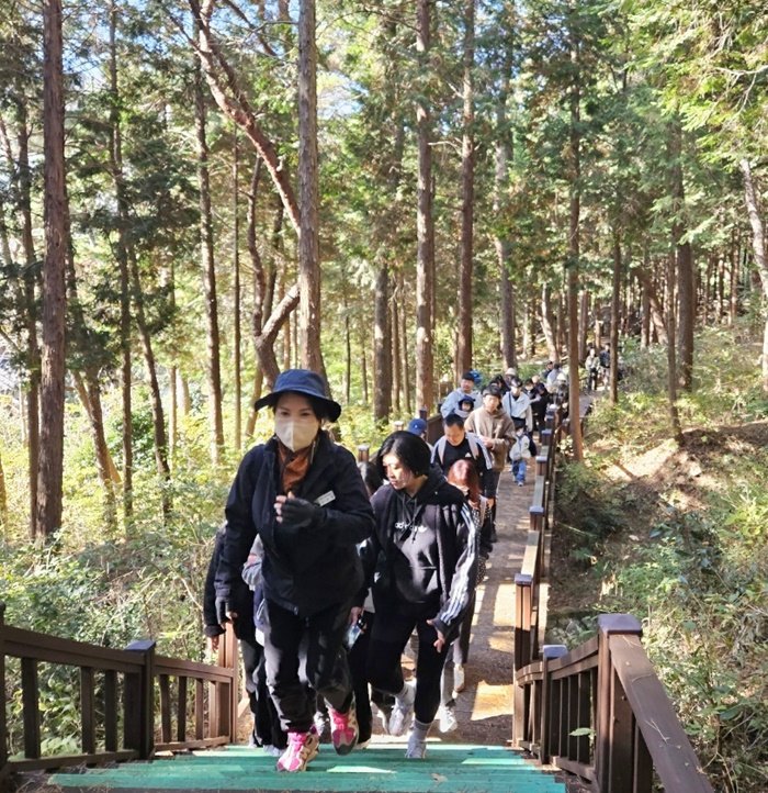 Âü°¡ÀÚµéÀº ÁøÇØ À庹»ê¿¡ ÀÚ¸®ÇÑ Ã¢¿ø Æí¹é Ä¡À¯ÀÇ ½£ Ä¡À¯¼¾ÅÍ¿¡ ¸ð¿© »ï¹Ð»ç, Çϴø¶·ç¸¦ Áö³ª ´Ù½Ã Ä¡À¯¼¾ÅÍ·Î µ¹¾Æ¿À´Â ¾à 3.2§° ÄÚ½º¸¦ ÇÔ²² °É¾ú´Ù.