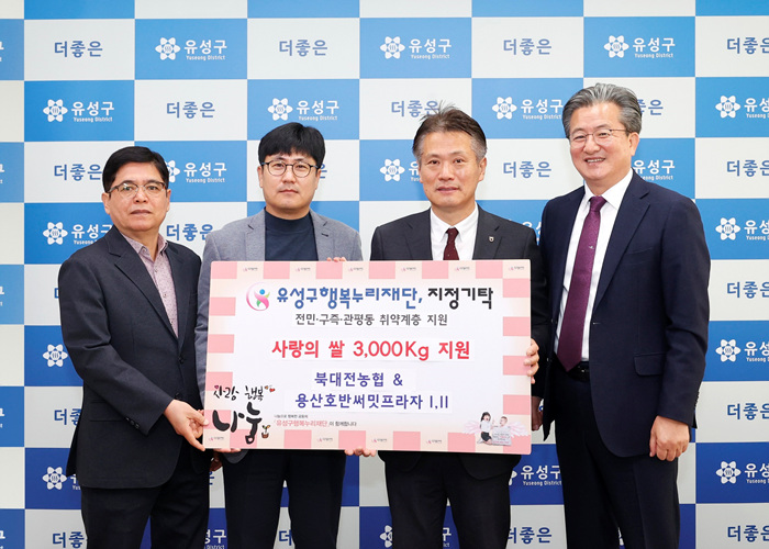 [½Ã»çÄÚ¸®¾ÆÀú³Î=À̼±¿ì±âÀÚ] ´ëÀü À¯¼º±¸(±¸Ã»Àå Á¤¿ë·¡)´Â 13ÀÏ ±¸Ã» Çູ»ç¶û¹æ¿¡¼ ºÏ´ëÀü³óÇù(Á¶ÇÕÀå ½Éû¿ë)°ú ¿ë»êÈ£¹Ý½á¹ÔÇÁ¶óÀÚ¥°·¥±(´ëÇ¥ ±è¼±Ãá, È«Àçȯ)°¡ À¯¼º±¸ Ãë¾à°èÃþ Áö¿øÀ» À§ÇØ ¹é¹Ì 3,000kgÀ» À¯¼º±¸Çູ´©¸®Àç´Ü¿¡ ±âŹÇß´Ù°í ¹àÇû´Ù.