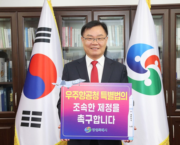 È«³²Ç¥ â¿øÆ¯·Ê½ÃÀåÀº “Ç×°ø¿ìÁÖ»ê¾÷ÀÌ Áý¾àµÈ °æ³²¿¡ ¿ìÁÖÇ×°øÃ»À» ¼³¸³ÇÑ´Ù¸é ÀÔÁöÀû ÀÌÁ¡À» ¹ÙÅÁÀ¸·Î ¿ì¸®³ª¶ó ¿ìÁÖÇ×°øºÐ¾ßÀÇ ºñ¾àÀûÀÎ ¼ºÀåÀÌ ÀÌ·ïÁú °Í”À̶ó¸ç “°æ»ó³²µµÀÇ Àçµµ¾à°ú ÇÔ²² ´ëÇѹα¹ ¾îµð¼³ª »ì±â ÁÁÀº Áö¹æ½Ã´ë¸¦ ÀÌ·ç´Â ÇÑ ÃàÀÌ µÉ ¿ìÁÖÇ×°øÃ» ¼³¸³À» À§ÇØ ¿ìÁÖÇ×°øÃ» Ưº°¹ýÀÇ ¿¬³» Á¦Á¤¿¡ ÈûÀ» ¸ðÀ¸°Ú´Ù”°í ¸»Çß´Ù.