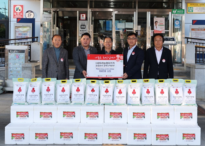 [½Ã»çÄÚ¸®¾ÆÀú³Î=±è¿¬ÇÐ ±âÀÚ] (»ç)¿ì¸®³ó¾÷Áö۱â¿îµ¿º»ºÎ °æºÏÁö¿ªº»ºÎ(º»ºÎÀå ±èÁ¾ÇÊ)´Â 13ÀÏ ¿µ¾ç±º(±º¼ö ¿ÀµµÃ¢) ¾î·Á¿î ÀÌ¿ôµéÀÇ µû¶æÇÑ °Ü¿ï³ª±â¸¦ À§ÇØ ¹é¹Ì¿Í ±èÀå±èÄ¡ 100¹Ú½º(700¸¸¿ø »ó´ç)¸¦ Àü´ÞÇß´Ù.