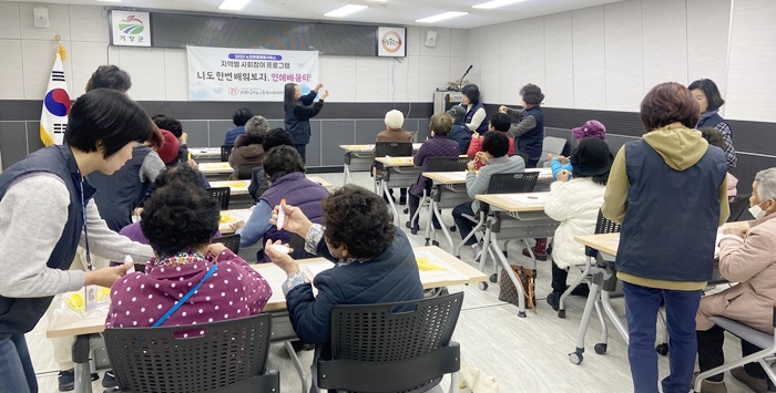 [½Ã»çÄÚ¸®¾ÆÀú³Î=Á¤Á¾¹Î ¼±ÀÓ±âÀÚ] °Åⱺ ºÏ»ó¸é(¸éÀå ¹ÚµµÇý)Àº 14ÀÏ ÇàÁ¤º¹Áö¼¾ÅÍ ¼ÒȸÀǽǿ¡¼ ³ëÀθÂÃãµ¹º½¼ºñ½º¸¦ Á¦°ø¹Þ°í ÀÖ´Â ¾î¸£½Å 20¿© ¸íÀ» ´ë»óÀ¸·Î °ÅâÀξֳëÀÎÅëÇÕÁö¿ø¼¾ÅÍ(½Ã¼³Àå ±èÁ¤¼ö)°¡ ÁÖ°üÇÑ »çȸÂü¿© ÇÁ·Î±×·¥À» ¿î¿µÇß´Ù.