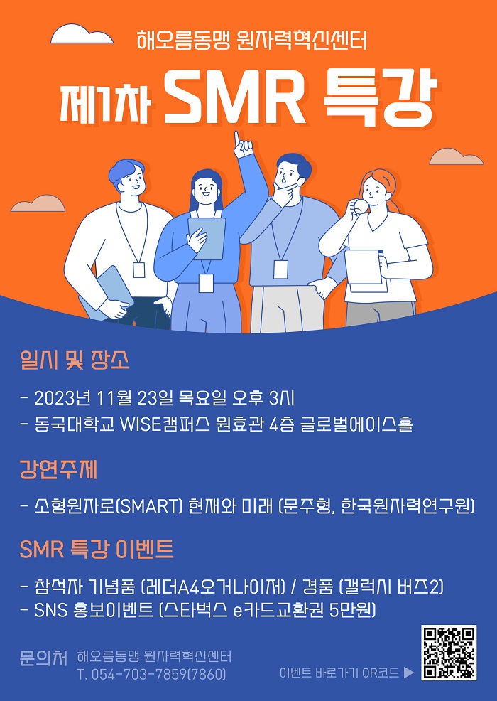[½Ã»çÄÚ¸®¾ÆÀú³Î=°æºÏÃëÀ纻ºÎ] µ¿±¹´ë WISEÄ·ÆÛ½º ÇØ¿À¸§µ¿¸Í ¿øÀÚ·ÂÇõ½Å¼¾ÅͰ¡ ¿À´Â 23ÀÏ ¿ÀÈÄ 3½Ã µ¿±¹´ë WISEÄ·ÆÛ½º ±Û·Î¹ú¿¡À̽ºÈ¦¿¡¼ ‘¼ÒÇü¿øÀÚ·Î(SMART) ÇöÀç¿Í ¹Ì·¡’¶ó´Â ÁÖÁ¦·Î SMR Ư°À» °³ÃÖÇÑ´Ù.