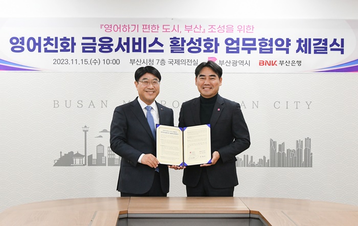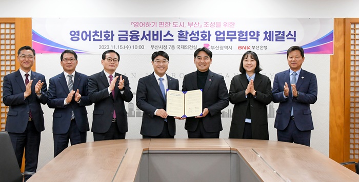[½Ã»çÄÚ¸®¾ÆÀú³Î=±èÈñ¿µ ±âÀÚ] BNKºÎ»êÀºÇà(ÀºÇàÀå ¹æ¼ººó)Àº 15ÀÏ ¿ÀÀü, ºÎ»ê½Ãû ±¹Á¦ÀÇÀü½Ç¿¡¼ ºÎ»ê½Ã¿Í ¿µ¾îÇÏ±â ÆíÇÑ µµ½Ã Á¶¼ºÀ» À§ÇÑ ‘¿µ¾îÄ£È ±ÝÀ¶¼ºñ½º Ȱ¼ºÈ ¾÷¹«Çù¾à’À» ü°áÇß´Ù°í ¹àÇû´Ù.