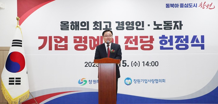 À̳¯ Çà»ç¿¡¼ È«³²Ç¥ â¿ø½ÃÀåÀº µÎ ÇåÁ¤Àο¡ ´ëÇÑ ÃàÇÏ¿Í ÇÔ²² “±â¾÷ ¸í¿¹ÀÇ Àü´çÀ» ÅëÇØ ¿ì¸® Áö¿ª ±â¾÷À» »ç¶ûÇÏ´Â ¸¶À½ÀÌ À̰÷À» ã´Â ºÐµé¿¡°Ô Àü´ÞµÇ±â¸¦ ¹Ù¶õ´Ù”¸ç “±×°£ º»ÀÎÀÇ ÀÚ¸®¿¡¼ ¿Á¤°ú ³ë·ÂÀ» ´ÙÇØÁֽŠµÎ ÇåÁ¤ÀÎÀº ¹°·Ð ¸ðµç ±â¾÷Àΰú ³ëµ¿ÀÚ ¿©·¯ºÐ²² °¨»çµå¸°´Ù”°í ¹àÇû´Ù.