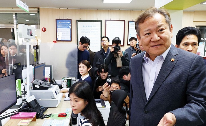 | ÀÌ»ó¹Î ÇàÁ¤¾ÈÀüºÎ Àå°üÀÌ 19ÀÏ ¿ÀÈÄ ¼¿ï Á¾·Î±¸ û¿îÈ¿ÀÚµ¿Áֹμ¾Å͸¦ ¹æ¹®ÇØ »çÈê° À̾îÁö°í ÀÖ´Â Á¤ºÎ ÇàÁ¤Àü»ê¸Á Àå¾Ö º¹±¸¸¦ À§ÇÑ ÇöÀåÁ¡°ËÀ» Çϰí ÀÖ´Ù |