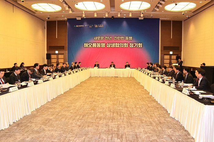 [½Ã»çÄÚ¸®¾ÆÀú³Î=°æºÏÃëÀ纻ºÎ] °æÁÖ·¿ï»ê·Æ÷Ç× 3°³ µµ½Ã ÇàÁ¤ÇùÀÇüÀÎ ‘µ¿³²±Ç ÇØ¿À¸§µ¿¸Í »ó»ýÇùÀÇȸ’ ¿ÃÇØ ÇϹݱâ Á¤±âȸ°¡ 21ÀÏ ·Ôµ¥È£ÅÚ ¿ï»ê Å©¸®½ºÅ»º¼·ë¿¡¼ ¿·È´Ù.