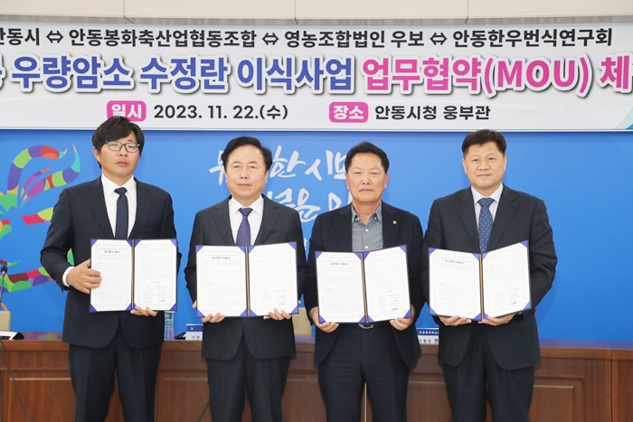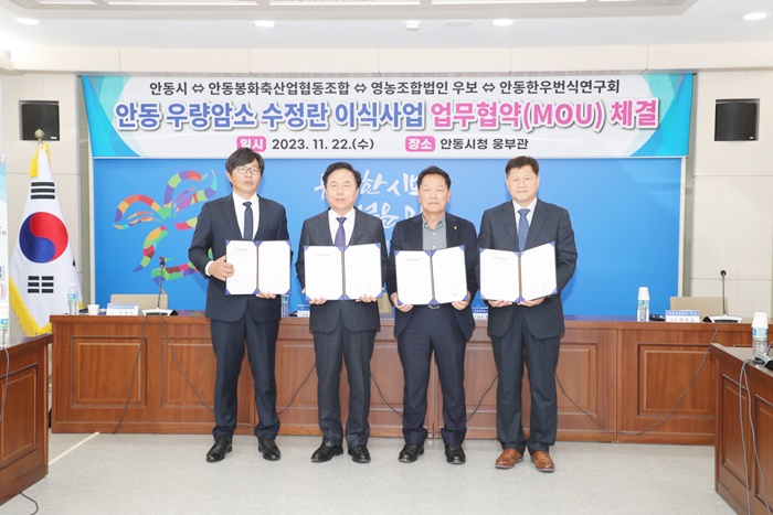 [½Ã»çÄÚ¸®¾ÆÀú³Î=±è¿¬ÇÐ ±âÀÚ] ¾Èµ¿½Ã´Â 22ÀÏ ¾Èµ¿ºÀÈÃà»ê¾÷Çùµ¿Á¶ÇÕ(Á¶ÇÕÀå ÀüÇü¼÷), ¿µ³óÁ¶ÇÕ¹ýÀÎ ¿ìº¸(´ëÇ¥ ÀÌÈ£ÁØ), ¾Èµ¿ÇÑ¿ì¹ø½Ä¿¬±¸È¸(ȸÀå ¹ÎÇʱÔ)¿Í ÇÔ²² ‘¾Èµ¿½Ã ¿ì·®¾Ï¼Ò ¼öÁ¤¶õ À̽Ļç¾÷’À» À§ÇÑ ¹Î°ü Çù·Â ¾÷¹«Çù¾à(MOU)¸¦ ü°áÇß´Ù.