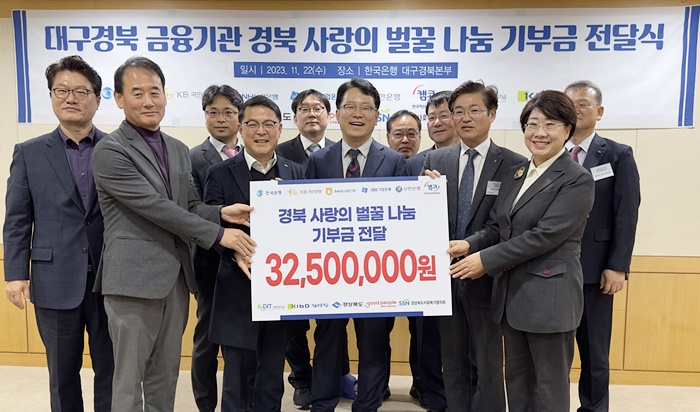 À̳¯ Çà»ç¿¡´Â ÀÌ´ÞÈñ °æºÏµµ °æÁ¦ºÎÁö»ç, ±ÇÅ¿ë Çѱ¹ÀºÇà ´ë±¸°æºÏº»ºÎÀå µî 8°³ ±ÝÀ¶±â°ü(½Å¿ëº¸Áõ±â±Ý, ±¹¹ÎÀºÇà, ±â¼úº¸Áõ±â±Ý, ±â¾÷ÀºÇà, ³óÇùÀºÇà, ½ÅÇÑÀºÇà, Çѱ¹ÀÚ»ê°ü¸®°ø»ç) ´ë±¸°æºÏÁö¿ªº»ºÎÀåÀÌ Âü¼®ÇØ 3,250¸¸ ¿ø »ó´çÀÇ ¹ú²ÜÀ» °æ»óºÏµµ¿¡ Àü´ÞÇß´Ù.