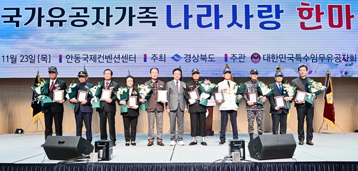 [½Ã»çÄÚ¸®¾ÆÀú³Î=±è¿¬ÇÐ ±âÀÚ] °æºÏµµ´Â 23ÀÏ ¾Èµ¿±¹Á¦ÄÁº¥¼Ç¼¾ÅÍ¿¡¼ ÀÌö¿ì µµÁö»ç¸¦ ºñ·ÔÇÑ ±â°ü´ÜüÀå, ±¹°¡À¯°øÀÚ¿Í À¯°¡Á·, º¸ÈÆ´ÜüÀå ¹× È¸¿ø µî 800¿© ¸íÀÌ Âü¼®ÇÑ °¡¿îµ¥ '2023³â ±¹°¡À¯°øÀÚ·°¡Á· ³ª¶ó»ç¶û ÇѸ¶À½´ëȸ'¸¦ °³ÃÖÇß´Ù.