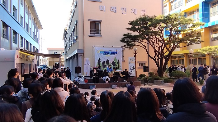 [½Ã»çÄÚ¸®¾ÆÀú³Î=°æºÏÃëÀ纻ºÎ] ¼±´ö¿©ÀÚ°íµîÇб³(±³°¨ ÀåÇý°æ)´Â 22ÀÏ, 300¿© ¸íÀÇ ÇлýµéÀÌ °ü¶÷ÇÏ´Â °¡¿îµ¥ ±³»çµéÀÌ ÁغñÇÑ ¹ö½ºÅ· ‘À̱äºñ±äÁø¾î°ÔÀÎ’À» °³ÃÖÇß´Ù.