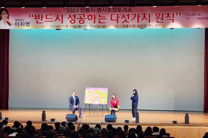 [½Ã»çÄÚ¸®¾ÆÀú³Î=±è¿¬ÇÐ ±âÀÚ] ¾Èµ¿½Ã(±Ç±ââ ½ÃÀå)¿Í ¾Èµ¿Ã»¼Ò³â¹®È¼¾ÅÍ(±èÁöÇý ¼¾ÅÍÀå)´Â Áö³ 23ÀÏ ½Ãû ¿µ³²È¦¿¡¼ ÀÌÁö¿µ °»ç¸¦ ÃÊÃ»ÇØ ‘¹Ýµå½Ã ¼º°øÇÏ´Â ´Ù¼¸ °¡Áö ¿øÄ¢’À̶ó´Â ÁÖÁ¦·Î ¸í»çÃÊû ÅäÅ©¼î¸¦ ÁøÇàÇß´Ù.