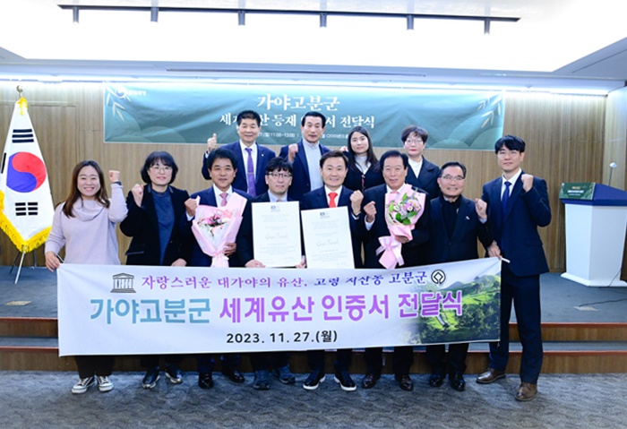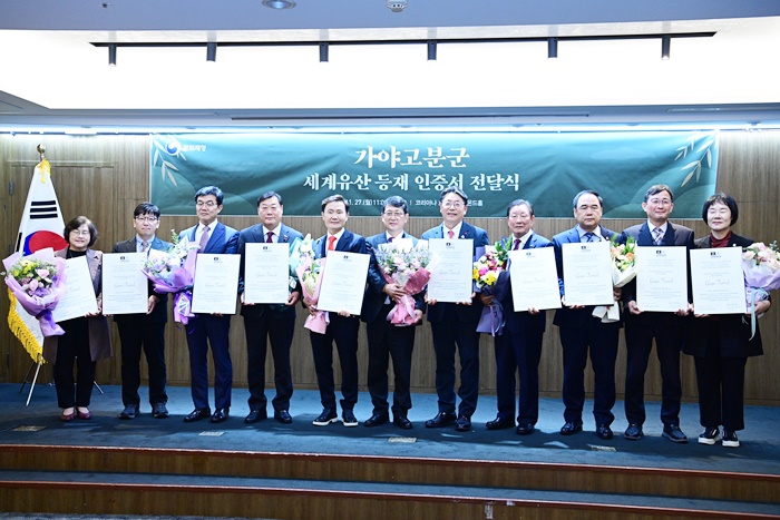 [½Ã»çÄÚ¸®¾ÆÀú³Î=±è¿¬ÇÐ ±âÀÚ] °æºÏµµ´Â 27ÀÏ ¹®ÈÀçûÀÌ °³ÃÖÇÑ °¡¾ß°íºÐ±º ¼¼°èÀ¯»ê µîÀç ÀÎÁõ¼ Àü´Þ½Ä¿¡¼ °í·É Áö»êµ¿ °íºÐ±ºÀ» Æ÷ÇÔÇÑ 7°³ÀÇ °¡¾ß°íºÐ±ºÀÌ ¼ÒÀçÇÑ ÁöÀÚüÀåµé°ú ÇÔ²² ÀÎÁõ¼¸¦ Àü´Þ¹Þ¾Ò´Ù.