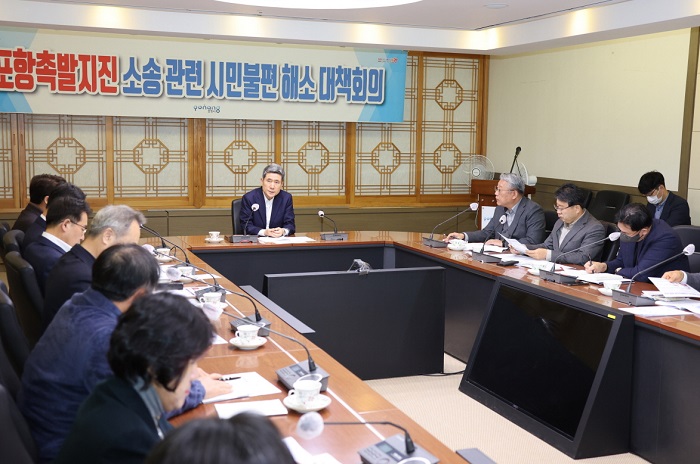 [½Ã»çÄÚ¸®¾ÆÀú³Î=°æºÏÃëÀ纻ºÎ] À̰´ö Æ÷Ç×½ÃÀåÀº 27ÀÏ Æ÷Ç× Ã˹ßÁöÁøÀÇ Á¤½ÅÀû ÇÇÇØ ¼ÕÇØ¹è»ó ¼Ò¼Û°ú °ü·ÃÇÑ ½Ã¹ÎºÒÆí ÃÖ¼Òȸ¦ À§ÇÑ ´ëÃ¥ ȸÀǸ¦ ÁÖÀçÇÏ¸ç ½Ã Â÷¿ø¿¡¼ ½Ã¹Î ºÒÆí ÇØ¼Ò¸¦ À§ÇÑ Àû±ØÀûÀÎ ´ëÃ¥ ¸¶·ÃÀ» °Á¶Çß´Ù.