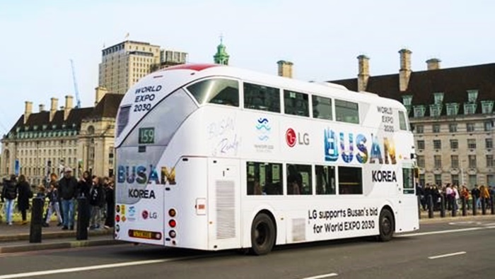 | ¿µ±¹ ·±´øÀÇ ´ëÇ¥Àû ·£µå¸¶Å© ´ë°ü¶÷Â÷ ‘·±´ø¾ÆÀÌ’ ¾ÕÀ» Áö³ª´Â LG ºÎ»ê¿¢½ºÆ÷ È«º¸ ¹ö½º |
