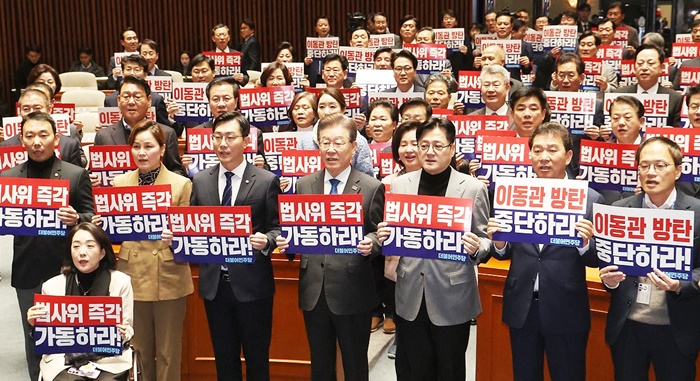 ±¹¹ÎÀÇÈûÀº À̳¯ ´õºÒ¾î¹ÎÁÖ´çÀÌ À̵¿°ü ¹æ¼ÛÅë½ÅÀ§¿øÀå źÇÙ¼ÒÃß¾È °Çà 󸮸¦ À§ÇØ ±èÁøÇ¥ ±¹È¸ÀÇÀåÀ» ¼³µæÇØ ±¹È¸ º»È¸ÀÇ ´Üµ¶ ¼ÒÁýÀ» ½ÃµµÇÏÀÚ, ±¹È¸ º»°ü ÀÇÀå½Ç ¾Õ¿¡¼ ¿¬Á ³ó¼ºÀ» ¹ú¿´´Ù.