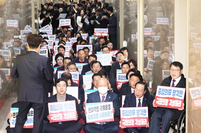 ÀÇ¿øµéÀº "Á߸³Àǹ« ¸Á°¢ÇÏ´Â ±¹È¸ÀÇÀå °¢¼ºÇ϶ó", "ÆíÆÄÀûÀÎ ±¹È¸¿î¿µ ±¹È¸ÀÇÀå »çÅðÇ϶ó", "źÇÙÁßµ¶ ÀÇÈ¸Æø°Å ¹ÎÁÖ´çÀº °¢¼ºÇ϶ó", "¹Î»ý¿Ü¸é źÇÙ³²¹ß ±¹¹ÎµéÀº ºÐ³ëÇÑ´Ù", "źÇÙÁßµ¶ źÇÙ³²¹ß ¹ÎÁÖ´çÀ» ±ÔźÇÑ´Ù" µîÀÇ ±¸È£¸¦ ¿ÜÃÆ´Ù.