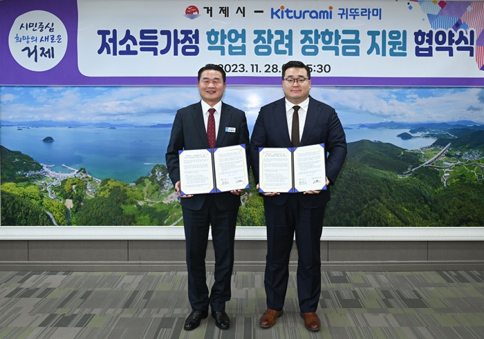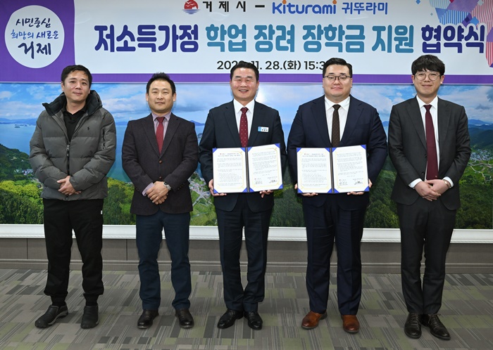 [½Ã»çÄÚ¸®¾ÆÀú³Î=Á¤Á¾¹Î ¼±ÀÓ±âÀÚ] °ÅÁ¦½Ã(½ÃÀå ¹ÚÁ¾¿ì)¿Í ±Í¶Ñ¶ó¹Ì±×·ì(ȸÀå ÃÖÁø¹Î)Àº 28ÀÏ °ÅÁ¦½Ãû¿¡¼ Áö¿ª ³» Àú¼Òµæ°¡Á¤ Çлýµé¿¡°Ô Çо÷ Àå·Á ÀåÇÐ±Ý Áö¿øÀ» À§ÇÑ Çù¾àÀ» ü°áÇß´Ù.