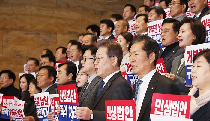 ±¹¹ÎÀÇÈûÀº ¹ÎÁÖ´çÀÌ Á¤ÀïÀ» À§ÇÑ 'Á¤Ä¡ Ư°Ë'°ú ±¹Á¶¸¦ ¹Ð¾îºÙÀÌ¸é¼ ¿ø³» ´Ù¼ö´ç ÁöÀ§¸¦ Ȱ¿ëÇÑ ÀÇȸ Æø°Å¸¦ ¹úÀ̰í ÀÖ´Ù°í ºñ³Çß´Ù.