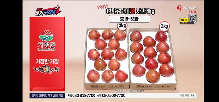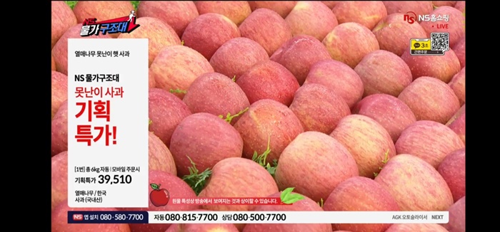 NSȨ¼îÇΠä³ÎÀ» ÅëÇØ Áö³ 11¿ù 25ÀÏ 1ȸ ¹æ¼Û¿¡¼´Â »ç°ú(3kg/»óÀÚ) ¾à 4,287°ÇÀÇ ÁÖ¹®À» ±â·ÏÇßÀ¸¸ç, 27ÀÏ ÁøÇàµÈ 2ȸ ¹æ¼Û¿¡¼´Â ¾à 3,500°ÇÀÇ ÁÖ¹®À» ¹Þ¾Æ ÃÑ 7,787¿© °ÇÀÇ ÆÇ¸Å·®À» ´Þ¼ºÇß´Ù.