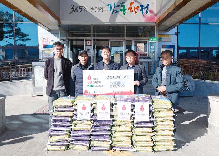 [½Ã»çÄÚ¸®¾ÆÀú³Î=±è¿¬ÇÐ ±âÀÚ] ¿µ³óÁ¶ÇÕ¹ýÀÎ ¼öÇÏ(´ëÇ¥ÀÌ»ç ÀåÁÖºÀ)´Â Áö³ 1ÀÏ ¿µ¾ç±º(±º¼ö ¿ÀµµÃ¢) ¾î·Á¿î ÀÌ¿ôÀ» µ½±â À§ÇØ Á÷Á¢ ³ó»çÁöÀº ģȯ°æ ½Ò 60Æ÷´ë(1Æ÷´ë 10kg, 240¸¸ ¿ø »ó´ç)¸¦ Àü´ÞÇß´Ù.